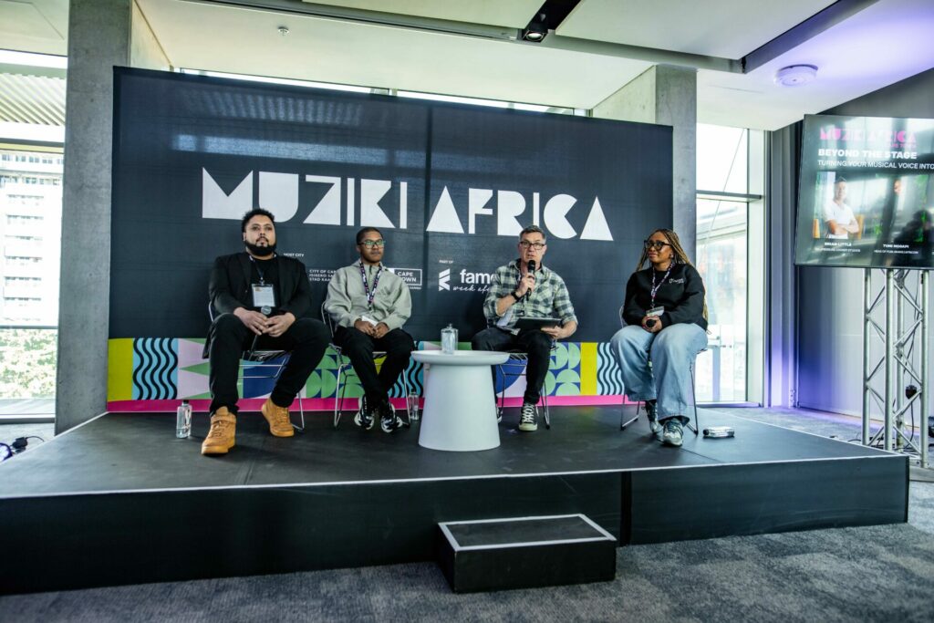The panel featured Brian Little, General Manager at Pressure Cooker Studios, alongside Tumi Mogapi, Head of Publishing at Africori; DJ and Composer Rudy Julius (a Bridges for Music alumnus and graduate of Pressure Cooker’s 15-month internship programme); and Damien Malgas, Industry Access Manager at Bridges for Music. Together, they unpacked how musicians can transform their creativity into sustainable, multi-platform careers.